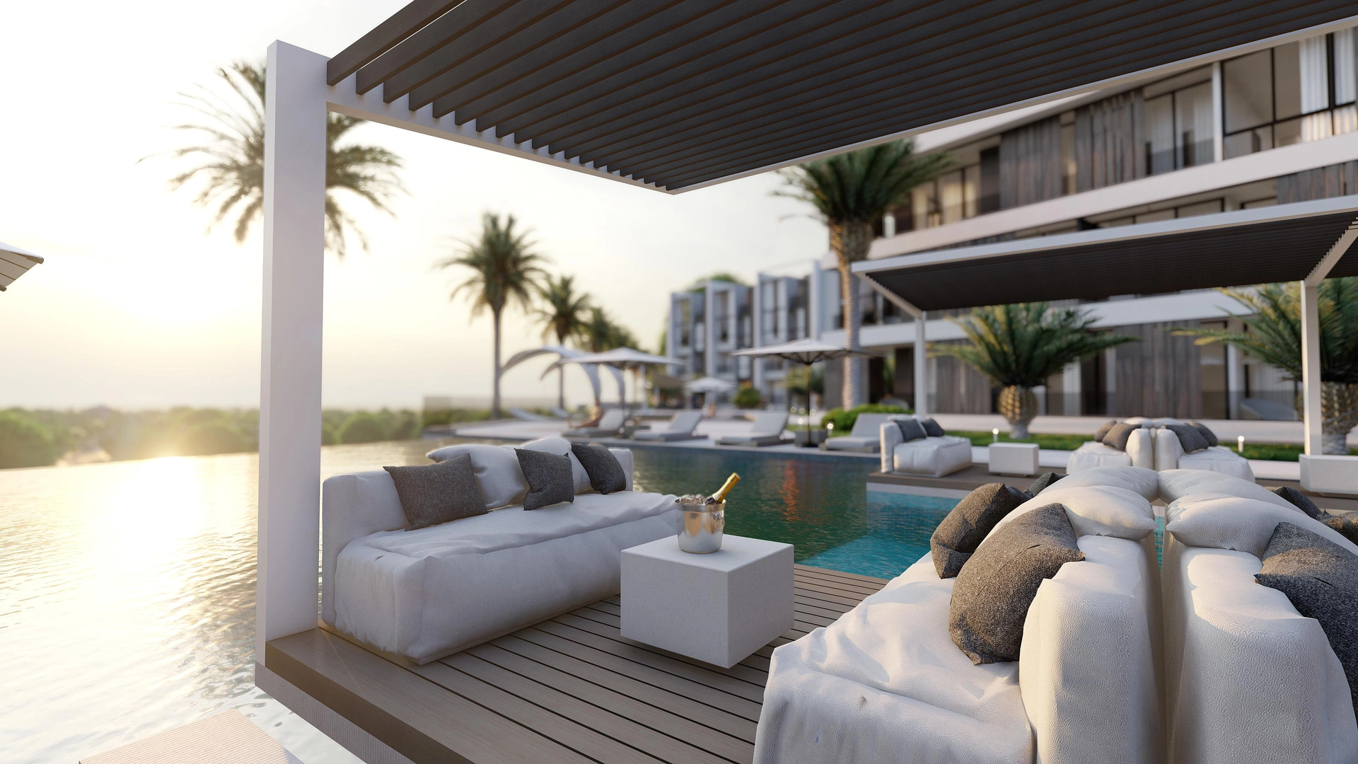 2 piscinas/ principal tipo infinity con vista al mar