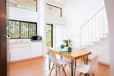 400173291050 - Pura Vida condo #1 - Located in a quiet and popular tourist area very close to Ocotal beach, this magnificent loft #1 in Pura Vida Complex offers a splendid view of the Ocotal mountain. This condo is made on two floors and has plenty of storage. The bedroom is upstairs. On the ground floor, there is a modern kitchen, a well-appointed living room for work or entertainment that can be easily converted in a second bedroom, a full bathroom and a laundry room on a well-secured gallery. The HOA of $175/month includes access to the 4 pools, garden maintenance, evening security, taxes and water. This condo is in excellent condition, very zen and minimalist and its price is very competitive! Ask me for a visit!