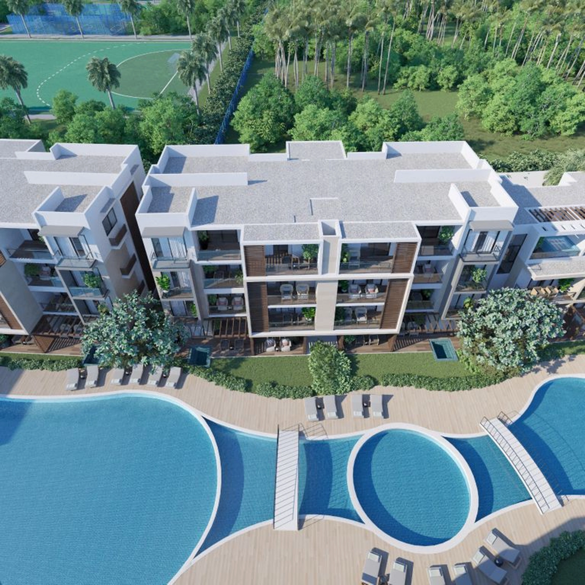 Todas las unidades frente a la piscina