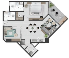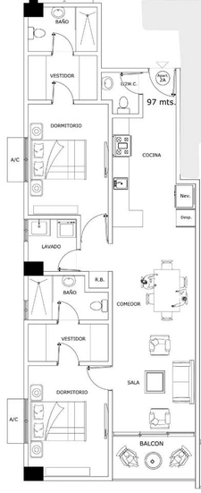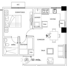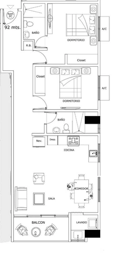 (Total 82m²) 2 habitaciones, área de lavado y 1 parqueo, 70m² de apartamento y 12m² de parqueo.