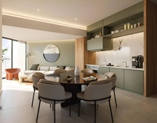 Amueblado, ascensor, área social con vista al mar, GYM, Jacuzzi, Bar, kitchenette, baño, BBQ. Apartamentos de 1 y 2 habitaciones, con habitación de servicio y area de lavado. Zona segura y excelente ubicación, espectacular vista, acceso fácil a la avenida Independencia y 30 de mayo, cercano a Parques, colegios, clínica, supermercados, Bancos. Entrega en Diciembre 2027