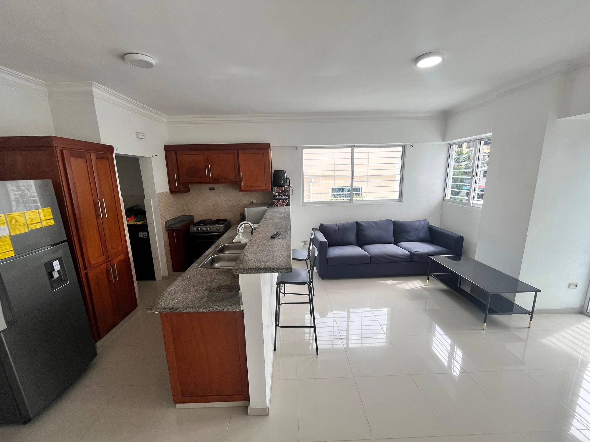 Cuenta con sala, comedor y cocina de concepto abierto, creando un ambiente amplio y funcional. Dispone de un balcón que aporta iluminación y ventilación natural, además de un área de lavado independiente.