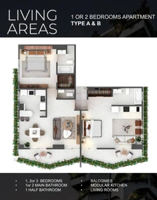 En el mismo corazón de Piantini. Moderna torre tipo Condohotel Apartamento de 1 habitación con baño y vestidor Balcón Sala Comedor 1/2 Baño Desayunador Cocina abierta Social Club Piscina Gimnasio Salón de actividades Terraza multiuso BBQ Circuito cerrado de vigilancia Entrega Octubre 2024