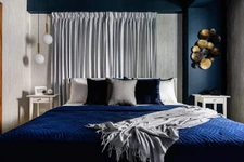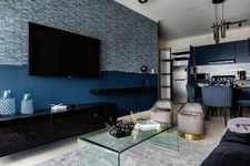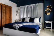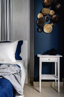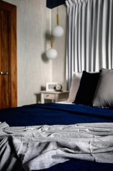 • 1 habitación principal con diseño de iluminación LED, papel tapiz y escritorio.