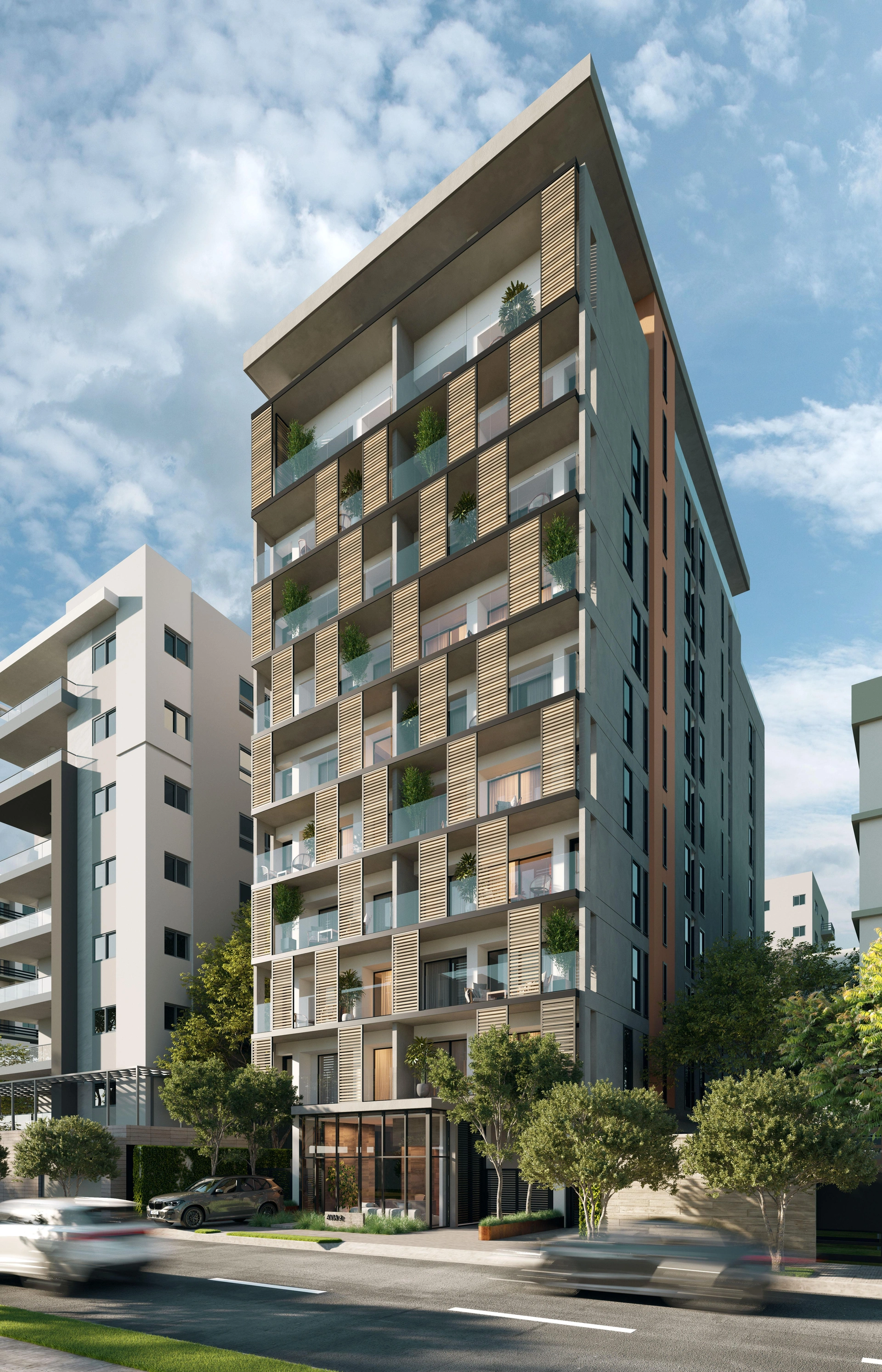 Este proyecto ha sido diseñado con un enfoque familiar, y contempla un total de 26 unidades de apartamentos de 3 habitaciones, 3.5 baños, 2 parqueos por unidad, con metrajes de 124m², 130m², 132m² y 200m². El edificio contará con 10 niveles y 4 sótanos destinados a estacionamientos, así como un área social distribuida en los niveles 10 y 11.