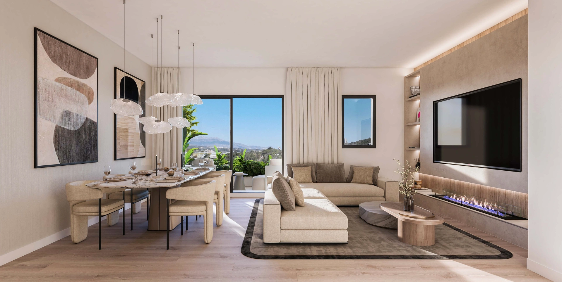 The exterior design of the homes is intended to offer maximum enjoyment of the Mediterranean climate. The properties feature private terraces, perfect for relaxing outdoors and enjoying the views. Additionally, some typologies include private gardens, providing extra space for outdoor activities or creating a personal oasis of greenery. The solariums available in certain units allow for maximum sun exposure throughout the year. The proximity to the sea, just 400 meters away, adds a special appeal, allowing for easy enjoyment of coastal walks and water activities.