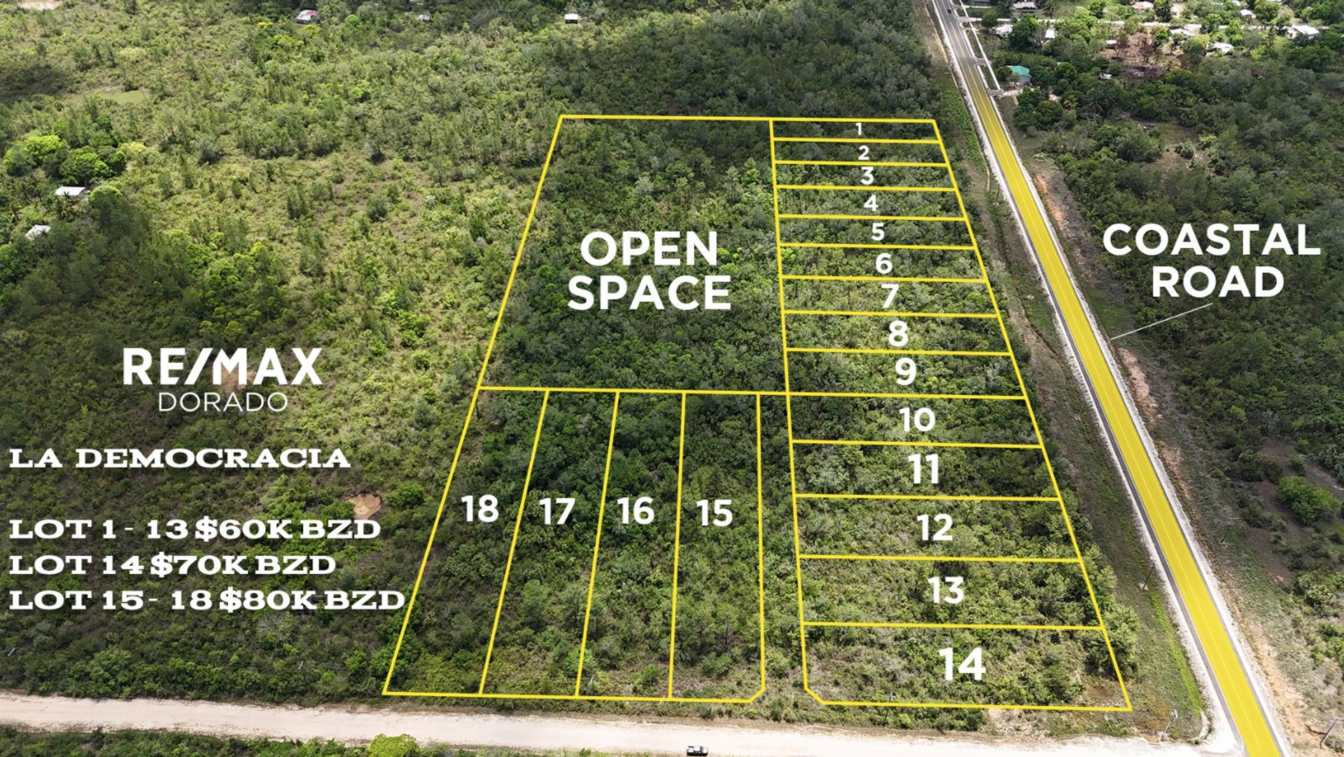 100091497007 - Democracia Subdivision - Property Description?? Discover your new beginning in La Democracia! ??Spacious lots, affordable payments, and a lifestyle surrounded by nature.Imagine building your dream home in a quiet community, with access to essentials and surrounded by wildlife. In our exclusive development, "La Democracia Subdivision," the future you desire is closer than ever.?? Area Features:Lots from 0.44 acres to 0.64 acres(plenty of space for your home, garden, business, or investment!)Strategic location at the intersection of Coastal Highway and George Price HighwayAccess to electricity, water, internet, and cableSurrounded by natural beauty: minutes from the Belize Zoo, Monkey Bay Wildlife Sanctuary, and more??? Proximity that matters:?? 30–40 minutes from Belize International Airport (BZE)?? 33 minutes to Belmopan, the country's capital?? Affordable, interest-free financing plan:?? Initial deposit: $8,000 BZD?? Monthly payments: $750 BZD?? Prices starting at: $60,000 BZD | $70,000 BZD | $80,000 BZD(depending on lot size and location)? 0% interest — no hidden fees, no hassle?? Why choose La Democracia?? Large lots: 0.44 and 0.64 acres? Quiet community with growth potential? Nature, connection, and quality of life? Perfect for families, investment, or retirementMake it happen today!The life you deserve starts with a good decision.Contact us for more information or to schedule your visit. ??? ?+501-223-2400? (BZ) | ?? ?+1-904-410-2400? (US) | ?? ?+501-601-2440? (BZ) WhatsappYour new home is waiting for you at La Democracia.