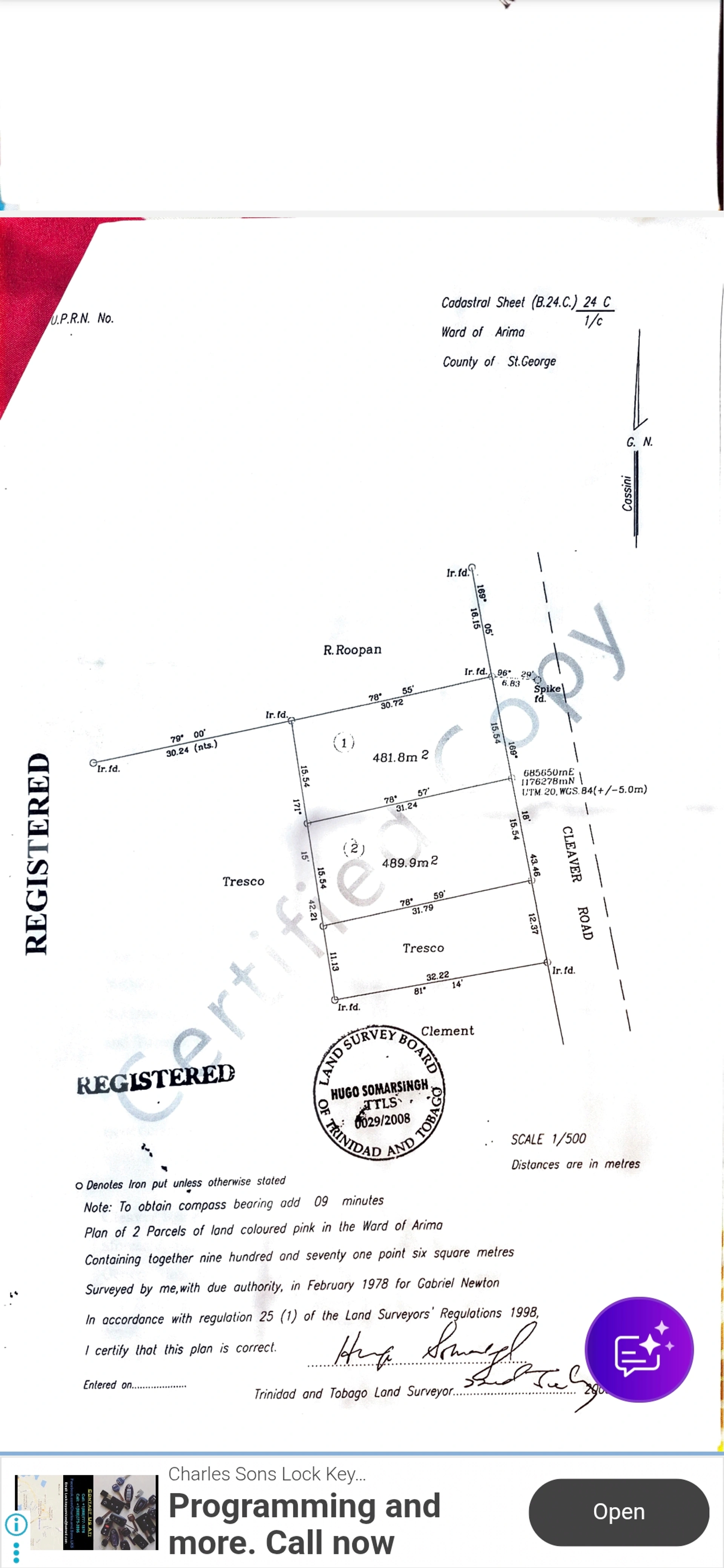 002021908124 - Residential land Arima - Residential landCleaver Road Arima481.8 m25186 sq ftAll approvalsMain Road 5 minutes from Arima