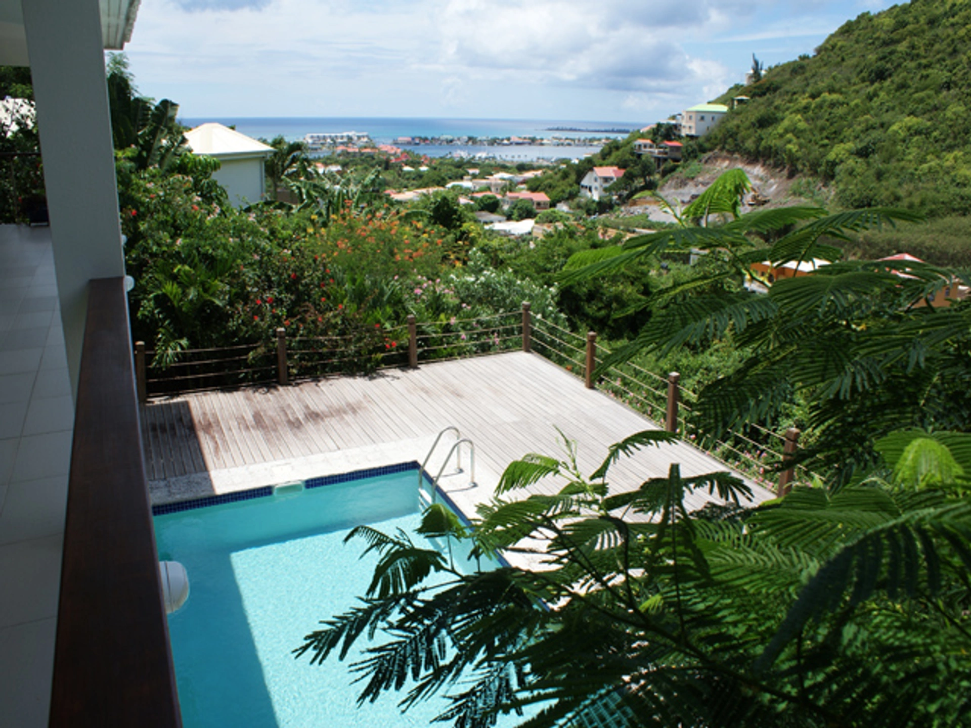 300014861020 - Villa Melilla @ Almond Grove - Total tranquility in a lush, tropical setting is the only way to describe this home. The property is set back in the far corner of the gated community of Almond Grove Estates, providing the homeowner with absolute privacy. All bedrooms & living areas look across a vast green valley, with the blue waters of the ocean in the distance. The mature garden hosts every type of tropical foilage imaginable. A seperate guest cottage, with kitchen, insures your guests privacy or, the cottage can be rented out to supplement your income. Enjoy the security & serenity of Almond Grove Estates, while feeling like you are on a country estate !