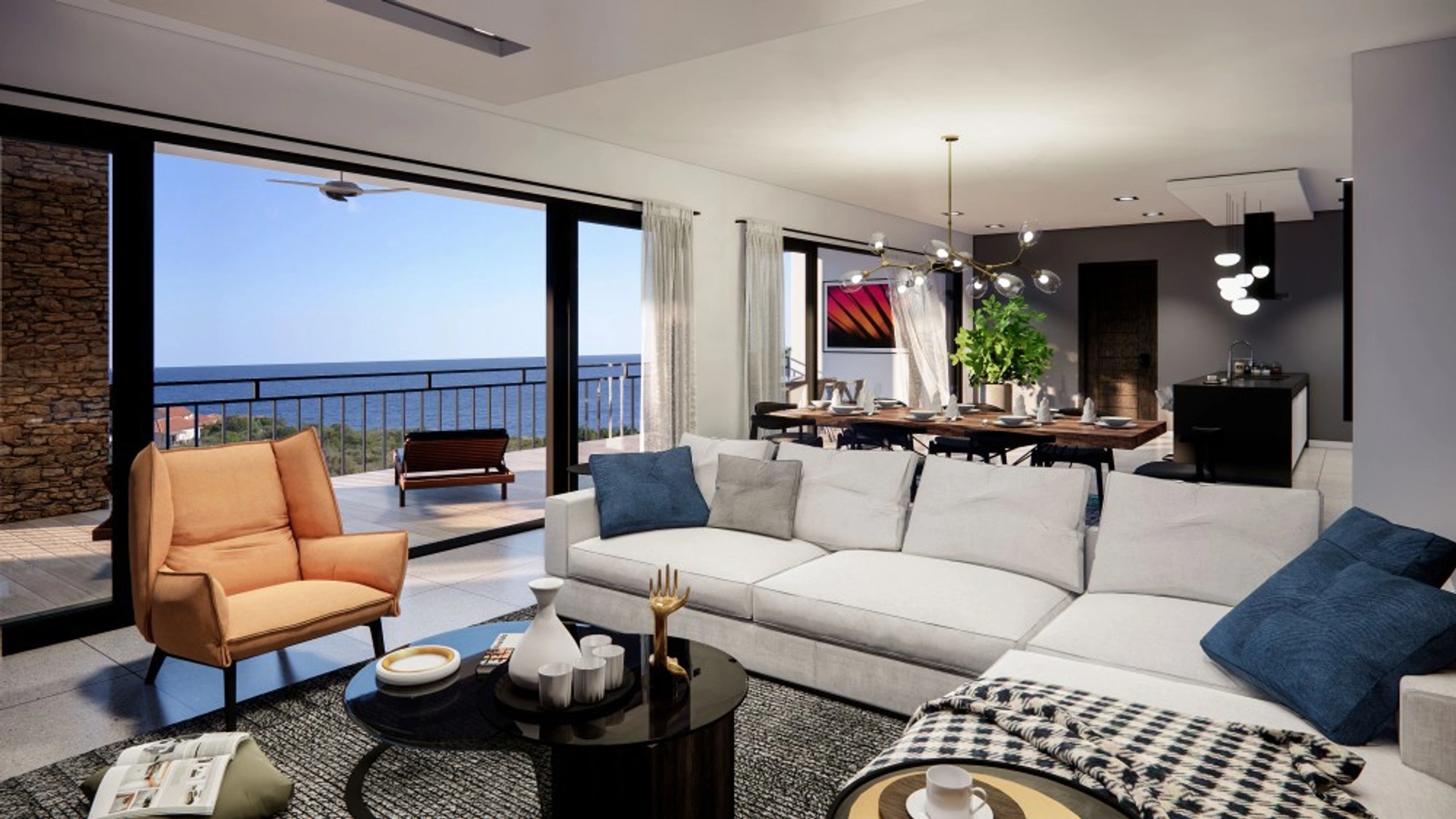 000871099059 - Cape Marie C9 - Luxurious and spacious apartment with sea view - You drive your car into a parking spot in the underground parking garage. From here, a glass wall elevator or a secured staircase leads you up to a spacious, well-lit, and airy hallway on the third floor. Here, you enter this spacious apartment through double doors and will immediately be impressed by the vastness of the living room and the wonderful ocean views ahead. On the right side of the open plan living room, you will find a modern European kitchen with built-in appliances and a breakfast bar. The living area further boasts room for a large dining set and a lounge area with a TV. Sliding doors between the living area and the balcony open up almost the entire wall so that inside and outside living blend into one. The balcony is covered to protect you from the sun and weather elements and it is a great place to relax, watch the sunset or meet up with friends. Due to its large size, this balcony is also a great entertainment area! Near the front door, the entrance is a hallway with room for storage and a large guest lavatory. Behind the kitchen is a spacious scullery with even more storage space and also room for a washer/dryer. The main bedroom is an exclusive master suite with a walk-in closet and luxurious en-suite bathroom. The bedroom has large windows with views over the ocean and sliding doors to the large covered balcony. The master bathroom has a walk-in shower and double vanities and impressive mountain views. There are two beautiful guest bedrooms on the other side of the apartment and one has ocean views. The guest bathroom is located in between the two rooms and has a double vanity, walk-in shower, and lavatory. Top-quality building materials were used to build the luxurious apartments in Cape Marie and this of course includes air conditioning in all bedrooms and in the living room. With the purchase of this property, you can achieve Curacao citizenship, ask us for details. This apartment is very suitable for:Full-time residentsAs a private vacation propertyFor vacation rentals in the Caribbean** luxurious vacation rental properties are in high demand in Curacao. Ask us for details about property management and ROI. Last but not least: via a lift, you access the underground parking garage where you have use of a parking space.The beautiful clear blue waters are only a few minutes away by car as are several restaurants, a bar, and a well-known Spa. Several white sandy beaches can be reached within 15 minutes by car and the airport is approximately 40 minutes away. Interested? Contact Marceltoday for more details or to schedule a viewing! Photos are impressions of phase B of the Cape Marie Project. The apartments in building C that we sell here have the same quality as phase B but all apartments have 3 bedrooms. See the floor plan for the layout. No rights can be derived from these impressions and/or photos. House no.: hs2513