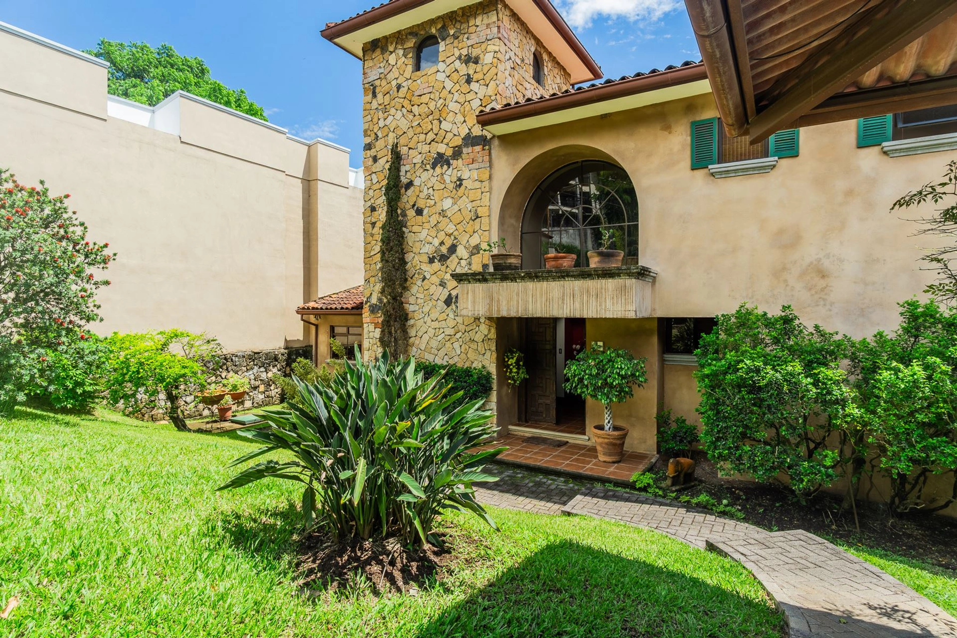 400183459014 - Tuscan-style home in Piedades, Santa Ana, Costa Rica - Welcome to this enchanting Tuscan-style retreat in Montaña Luna, Piedades, Santa Ana—crafted for families seeking warmth, character, and comfort. This two-story residence features 4 bedrooms, 3.5 bathrooms, a separate maid’s quarters with a full bath, and ample indoor-outdoor space designed to enjoy Costa Rica’s natural beauty.From the moment you enter, you're greeted by terracotta tile flooring and a hand-built stone fountain beneath the staircase—evoking the feel of a traditional Italian villa. Decorative wrought-iron railings, soft wall textures, and rich wood finishes add authenticity and charm.The main level includes a sunlit living area that opens to a spacious dining room and kitchen. French doors extend out to a covered terrace, ideal for morning coffee or evening meals with loved ones. The garden, beautifully landscaped in tiers, leads to a private creek—an unexpected natural luxury.Upstairs, the primary suite offers views of the garden and includes an en-suite bathroom. Three additional bedrooms share two well-appointed bathrooms. The maid’s quarters, with separate access, add convenience for long-term guests or staff.Additional highlights:400 m² of construction on 725 m² of landIndoor stone fountain and artisan wall finishesCovered terrace and landscaped yard with natural creekLocated in a gated, secure, and peaceful family-oriented communityClose to Santa Ana’s best schools, shops, and outdoor spacesNestled in the lush, tranquil Montaña Luna gated community in Santa Ana’s Piedades district, this Tuscan-inspired residence offers a lifestyle of charm and peaceful connection to nature. Families will love the serene, low-traffic neighborhood where kids can play safely and nature is always close.Within minutes, you’ll find:Town Center Santa Ana: cafés, restaurants, supermarkets, weekend marketsLocal and international schoolsParks and green spaces perfect for walks and outdoor playQuick access to Route 27 and surrounding mountain trailsWhat sets this home apart is its indoor-outdoor flow. Imagine relaxing by the interior fountain as natural light pours through arched windows, then stepping outside to your own garden path that leads directly to a peaceful creek. It’s a space that invites play, reflection, and connection.