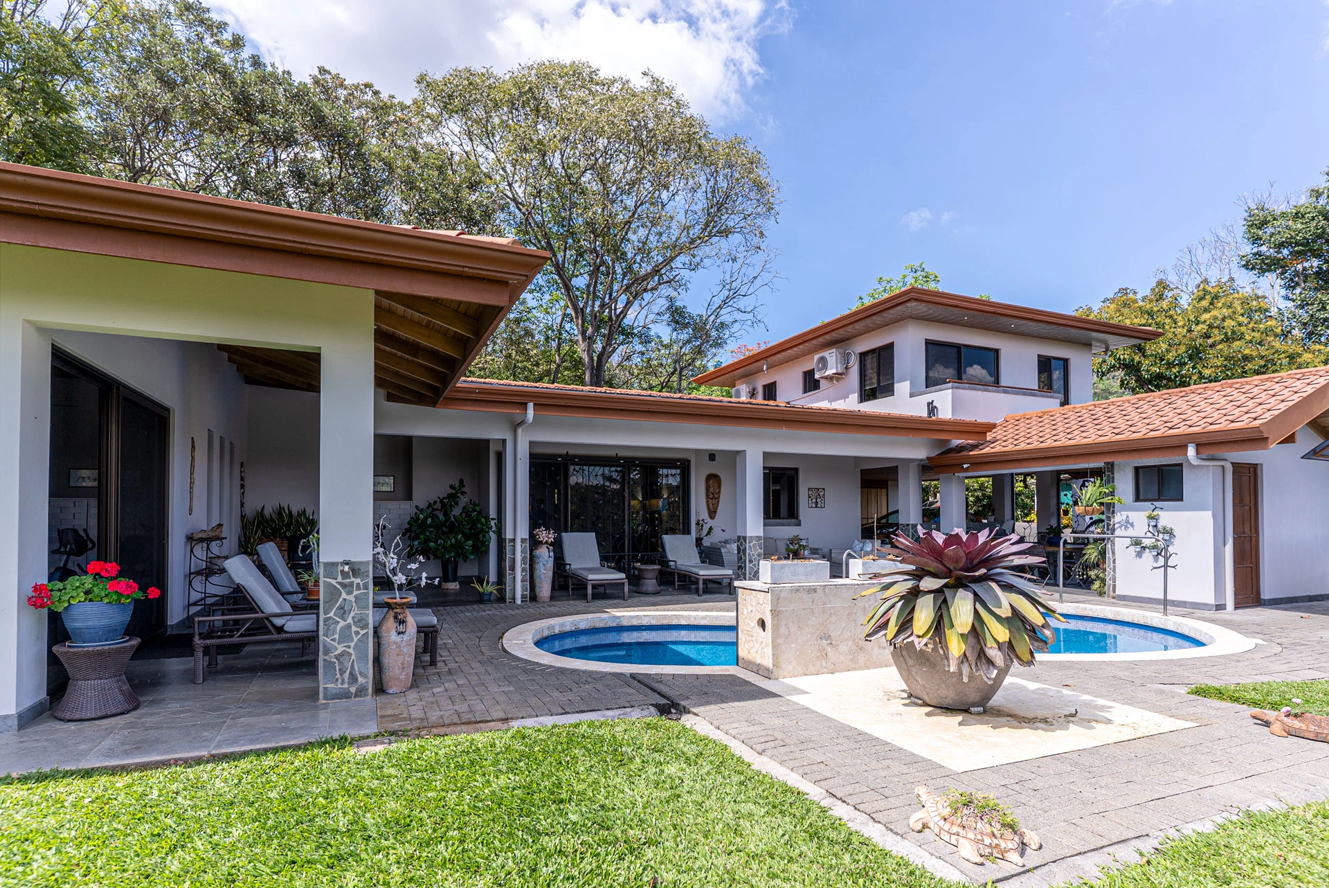 400052010075 - Private Sanctuary in an Exclusive Gated Community, with Lovely Valley Views - A Private Sanctuary inside the Exclusive Gated Community of San Isidro, AtenasTucked into theexclusive gated enclavein San Isidro, Atenas, this thoughtfully designed residence offers a rare sense of stillness—where the road quite literally ends, and uninterrupted tranquility begins. With no passing traffic and expansive open views stretching across the Central Valley, the home enjoys a level of privacy seldom found, even among luxury properties.Surrounded by lush greenery and bathed in Atenas’ renowned year-round climate, the property unfolds as both a peaceful retreat and an elegant full-time residence. Every space has been conceived to embrace the natural beauty that defines this region.Main Residence | 378 m²The heart of the home is an open-concept living space where light and air move freely, creating a seamless connection between indoors and out. A generously proportioned kitchen anchors the home—designed not only for functionality, but for those who truly enjoy cooking and gathering.Two spacious bedrooms, each with walk-in closet areas, offer comfort and privacy, complemented by two refined full bathrooms with quality finishes. Throughout the home, large openings frame the surrounding landscape, allowing nature to become an ever-present backdrop.Outdoor Living & ViewsStep outside and the atmosphere shifts into pure relaxation. A saltwater pool invites quiet morning swims or leisurely afternoons under the sun, while the surrounding terrace provides ample space for entertaining or simply unwinding.An outdoor dining and BBQ area creates the perfect setting for evenings with friends, where the panoramic views of the Central Valley transition from golden sunsets to twinkling city lights below. Here, the rhythm of daily life slows, replaced by the sounds of nature and gentle breezes.Private Guest Apartment | 42 m²Elevated above the main residence, a private guest apartment offers both independence and flexibility. With its own entrance, two bedrooms (one currently used as an office), a full kitchenette, and a private balcony, it is ideal for hosting guests, accommodating extended stays, or creating a dedicated workspace with inspiring views.Additional FeaturesThe home is located within a secure gated community, offering both peace of mind and a quiet residential atmosphere. A shared private well services the community, and the property’s end-of-road location further enhances its sense of seclusion. A two-car garage and separate bodega provide practical storage and convenience.A Distinctive OpportunityWhat truly sets this property apart is its unique positioning—being the final residence in the community—combined with a harmonious blend of privacy, functionality, and sweeping views. The layout offers versatility, whether for entertaining, hosting, or simply enjoying a serene lifestyle.This is more than a home; it is a place to retreat, to recharge, and to fully experience the natural beauty and calm that make Atenas one of Costa Rica’s most sought-after destinations.Contact us today to schedule a private showing or request more information.