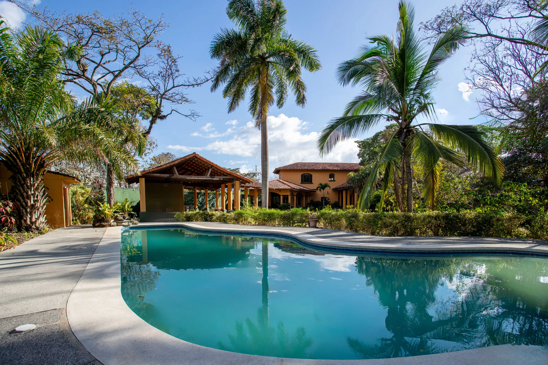 00139152328 - True colonial style home with big areas including pool and rancho - This truly Spanish Colonial styled home is a large estate-like property with several areas including a large two-story home with a formal entry and sitting room, large living, dining and spacious hallways that lead to extra large rooms with wooden floors and their own bathrooms. Added amenities include a unique inside garden area, wine room, service rooms, 6-stall garage area with added caretaker space and a large rancho and pool area. There is also a guard house adjacent to a main gate. This home has views of the area mountains and is nicely landscaped with mature palm-trees and large buganvilias.You can now use My Second Street for mortgages in Costa Rica for American citizens and residents. Fast, east home financing for Costa Rica real estate. Get 30-year fixed-rate mortgages.Pre-Qualify now:https://www.mysecondstreet.com/prequalify