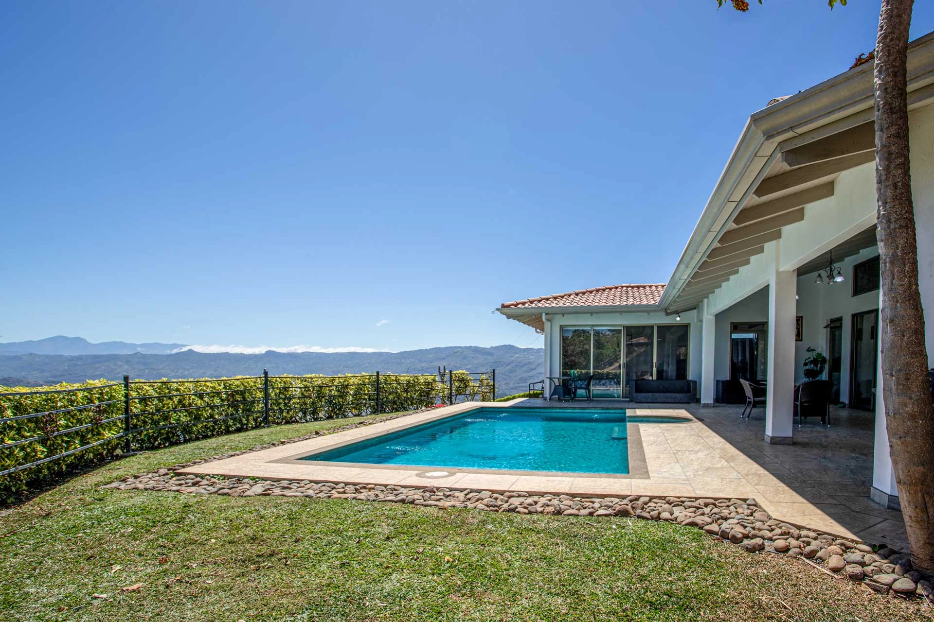 400051521105 - Modern meets traditional finishes Roca Verde home in Atenas - This modern meets traditional finishes Roca Verde home is located in Atenas' premier community Roca Verde. Very close to Atenas center and the pass that leads to the east west highway. This home features huge panoramic 180 degree homes of the capital San Jose and the area mountains. The 2 car carport leads to the front nicely decorated yard and inviting pool and deck area. The formal entry to the home features tall artesenal wooden slatted ceilings with plenty of light to showcase the homes wonderful woodwork and modern sleek finishes throughout. There is an ample kitchen with granite countertops and nicely finished wooded cabinetry. There are three bedrooms including the master bedroom, master bathroom bathroom on suite and walk in closet and a guest bath plus half bath. There's a nice size back yard and the property features a lower level lot ideal for added construction, added parking or orchard and garden area.Como visit you new Atenas-based home!You can now use My Second Street for mortgages in Costa Rica for American citizens and residents. Fast, east home financing for Costa Rica real estate. Get 30-year fixed-rate mortgages.Pre-Qualify now:https://www.mysecondstreet.com/prequalify