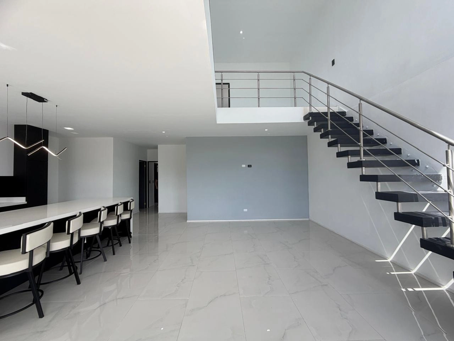 400051521119 - Ultramodern home with big Central Valley views - Ultramodern home with big Central Valley views is located just 10 minutes from town center in the tranquil counstryside between Morazan and San Isidro. The cooler temperatures and ever changing panoramic views is the perfect location to experience the cooler Atenas climates. The home has a perimeter with a long entry for several cars and the formal entrance to an open concept room with a guest bedroom and separate bath below and a large bedroom with en suite bath. There are top quality finishes and fictures found around the home. The modern-style kitchen has a large central island ideal for entertaining making the kitchen the center of the home. A staircase leads to an extra large master bedroom and en suite bath area with a sitting room and balcony with ever bigger views. The home is being sold semi-furnished with designer furniture and state of the art appliances.
