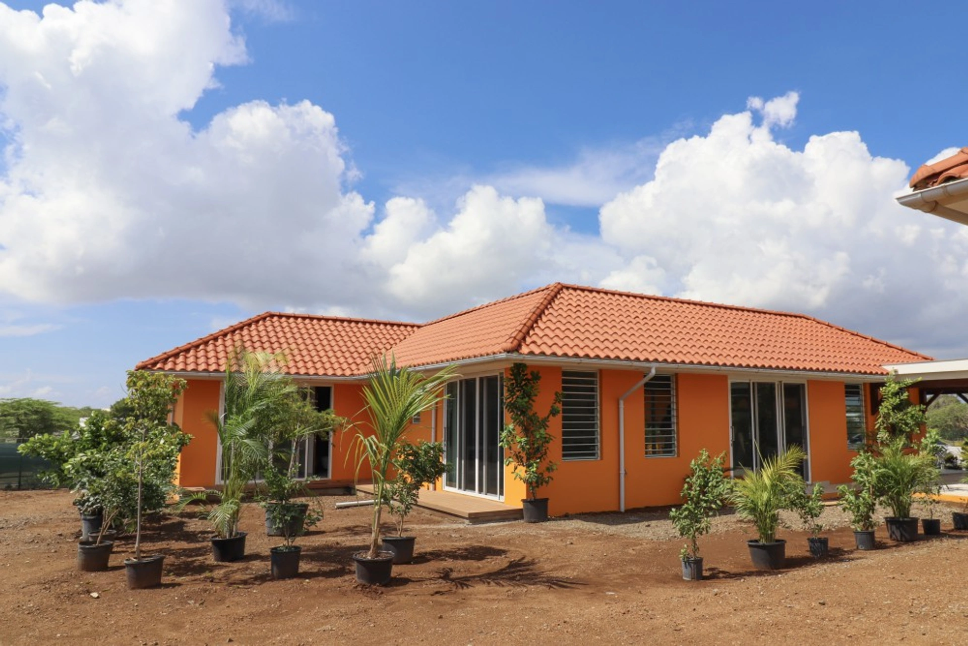 000871389076 - Hofi Vidanova type 4B - Semi-detached 3-bedroom house in modern resort - This modern semi-detached house offers plenty of space, both inside and outside. Because the two houses are built against each other, plenty of space is left for a generous garden. The layout is cleverly designed, with the living room surrounded by terraces. By opening the living room's sliding doors, indoor and outdoor spaces become one, allowing you to fully enjoy the outdoors.Each of the three bedrooms has its own bathroom, providing extra comfort and privacy. There is also a spacious utility room close to the kitchen, with enough space for a washing machine, dryer or an extra fridge. The house comes with a double carport and solar panels on the roof as standard. At an extra cost, it is even possible to install your own swimming pool.Sustainability and comfort are core values at this resort: the homes are equipped with excellent wifi, both inside and outside. Secure shutter windows can be left open for ventilation even when you are not at home. The homes are well insulated and designed to take full advantage of the wind, leading to energy savings. Wide roof overhangs protect from the sun, keeping the house cool. Both the homes and the street lights are powered by solar panels, and the grey water from the homes is treated and reused.Important to know: the pictures shown are only an impression of a model home. There are different types of homes available at this resort. More information on detached houses can be found on the project page. Long-term rental is allowed of at least 3 months.Are you interested in this beautiful new home? Send us a short e-mail with your name, address and telephone number. We will be happy to send you a comprehensive sales brochure with floor plans, price lists, and more information on the various house types. You can also receive a link to a ‘virtual tour’, which allows you to view the homes online.In a project like this, the largest plots and best located homes are always sold first, so contact us today to make an appointment!