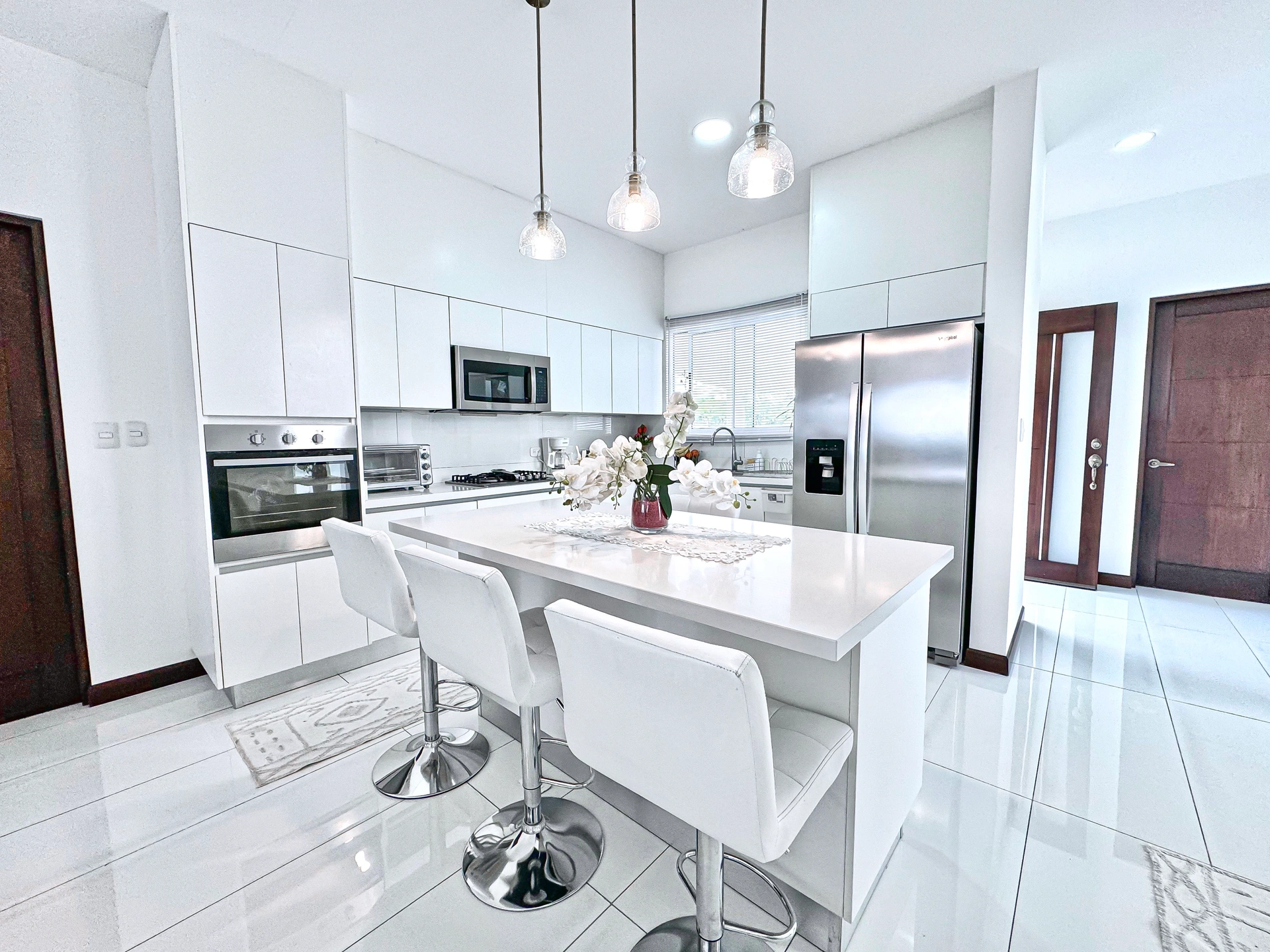 40018421274 - Casa Luz one level home with pool for sale in Escazu - Welcome to Casa Luz one level home with pool for sale in Escazu Costa Rica. Casa Luz boasts a contemporary decor with a pool-side outdoor covered living terrace. Casa Luz is nestled in a prime location ofEscazuwith quick access to shopping, cafes, entertainment, private schools and Route 27. Casa Luz is located in a friendly-exclusive gated community located in Guachipelin, an upscale vibrant suburb near the heart of Escazu. If you are seeking a new home and tranquility from the hustle & bustle of the Metropolitan City, but you still want to be a near distance to that urban lifestyle, then visit Casa Luz today. It’s a must-see home purchase option.Special Features:• Tranquility & Privacy• Private Pool & Large Outdoor Terrace• Large indoor and outdoor living areas for entertaining friends to family members• Designer Kitchen♥Casa Luz is a one-level home boasting 4 bedrooms and three & half bathrooms with porcelanato tile flooring throughout the entire home.The entrance into the home greets you with a foyer that connects you to a open kitchen design, dining area, formal living room, boasting lots of windows, and sliding doors opening to the pool , gardens and covered outdoor terrace.The pool-side terrace is a perfect location to enjoy outdoor lounging, a BBQ, cooling off in the pool, a lap or two, or just relax and enjoy your favorite beverage!The kitchen boasts eloquent cabinetry of white contemporary, ample storage, and lots of cooking space. Views of the pool, exterior gardens and patio can be seen from the kitchen. The kitchen boasts stainless steel appliances. Adjacent to the kitchen is a large storage/pantry room, laundry room, and the fourth bedroom.A separate hall leads to a TV lounge room and three bedrooms. All bedrooms boast wood finished porcelanto flooring. The Master bedroom is large and suitable for a king bedroom set. Boasting an en-suited bathroom with his & her’s toilets and a large walk-in closet. The en-suite bathroom boasts contemporary finishes, hosting a walk-in shower.The two secondary bedrooms boast views of the gardens and share a full independent bathroom. AC is installed in one of the secondary bedrooms.The fourth room can be utilized as a fourth bedroom, office or a maid’s room.Casa Luz one-level home for sale in Escazu, Costa Rica, is a wonderful home for families or couples to enjoy, and for entertaining friends and family members.INTERIOR FEATURES:• Tubing for AC mini-splits• Designer lighting• Rain Shower Faucets• LED mirror back lighting• Curtains & Blackouts• Large Porcelanato tile flooringADDITIONAL FEATURES:• 4 Parking spaces• Community Playground• Clubhouse® NEARBY PLACES:VINDIFresh MarketRestaurant Palacio Bendecido – ChineseJaak’s Seafood- RetaurantDa Noi- IcecreamEl Lugar Carne- Meat butcherGrainer BakerySaba PharmacyPriceSmartStudio CinemasGrocery- Auto MercadoCima HospitalMultiplaza MallPlaza- District 4Avenida EscazuIMAXStarbucksOutback SteakhouseSubwayABOUT THE COMMUNITY:Located in a desirable area, near the heart of Escazu, Casa Luz Escazu home for sale is only a few minutes away from Route 27, 80 minutes from the beach, 30 minutes from the airport, only a FEW MINUTES from Costa Rica’s BEST golf courses, fine dining, shopping plazas and malls such as Multi Park, Avenida Escazu, Distrito 4, MultiPlaza Mall of Escazu, Itskatzu Plaza and private schools such as Blue Valley, Mount View, West College, Saint Mary, Lighthouse, Pan American and The British School to name a few.