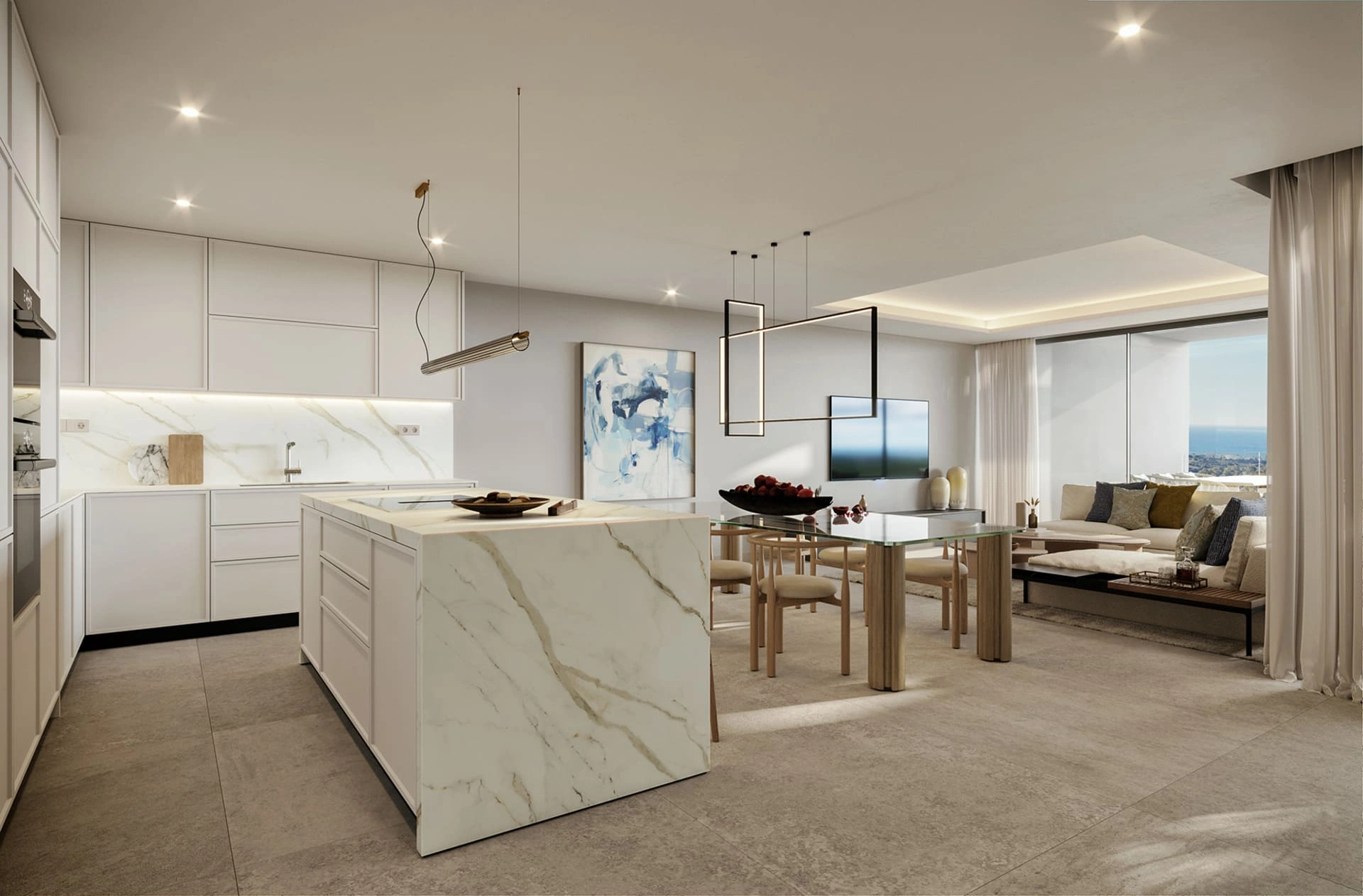 The exterior design of the homes in Buenas Noches focuses on integration with the natural environment, offering spacious terraces and private gardens that allow enjoyment of the Mediterranean climate. Pergolas add a touch of elegance and functionality, providing shade and additional space for outdoor leisure. The possibility of having a solarium in some typologies expands the options for outdoor enjoyment, allowing for maximum use of the sea views and natural surroundings.