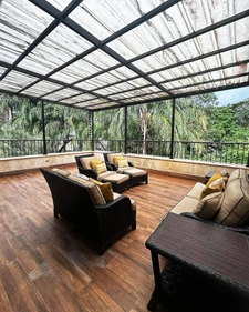 001642192048 - Rainforest Retreat Rio Cangrejal Mainland - Rainforest Retreat - A nature lover's oasis. This amazing rainforest retreat on +/- .97 acres with +/- 166ft of riverfront where nature is the reset button we all need, nothing but crowds of trees where you can hike more and worry less. Private, gated drive, 5 lodges with 5 baths, 5 kitchens, 6 bedrooms, separate laundry building and workshop. This riverside retreat features awe-inspiring jungle cliff views and the enchanting El Bejuco waterfall surrounded by beauty only Mother Nature can create. Colibri Lodge - 1 bedroom, 1 bath - 2 levels (sleeps 4) Bejuco Lodge - 1 bedroom, 1 bath (sleeps 4) Del Rio Lodge - 1 bedroom, 1 bath (sleeps 4) Tucano Lodge - 2 bedroom, 1 bath (sleeps 6) Jungle Lodge - large studio, 1 bath (sleeps 6) Tucano and Jungle can be rented as a 3 bedroom.