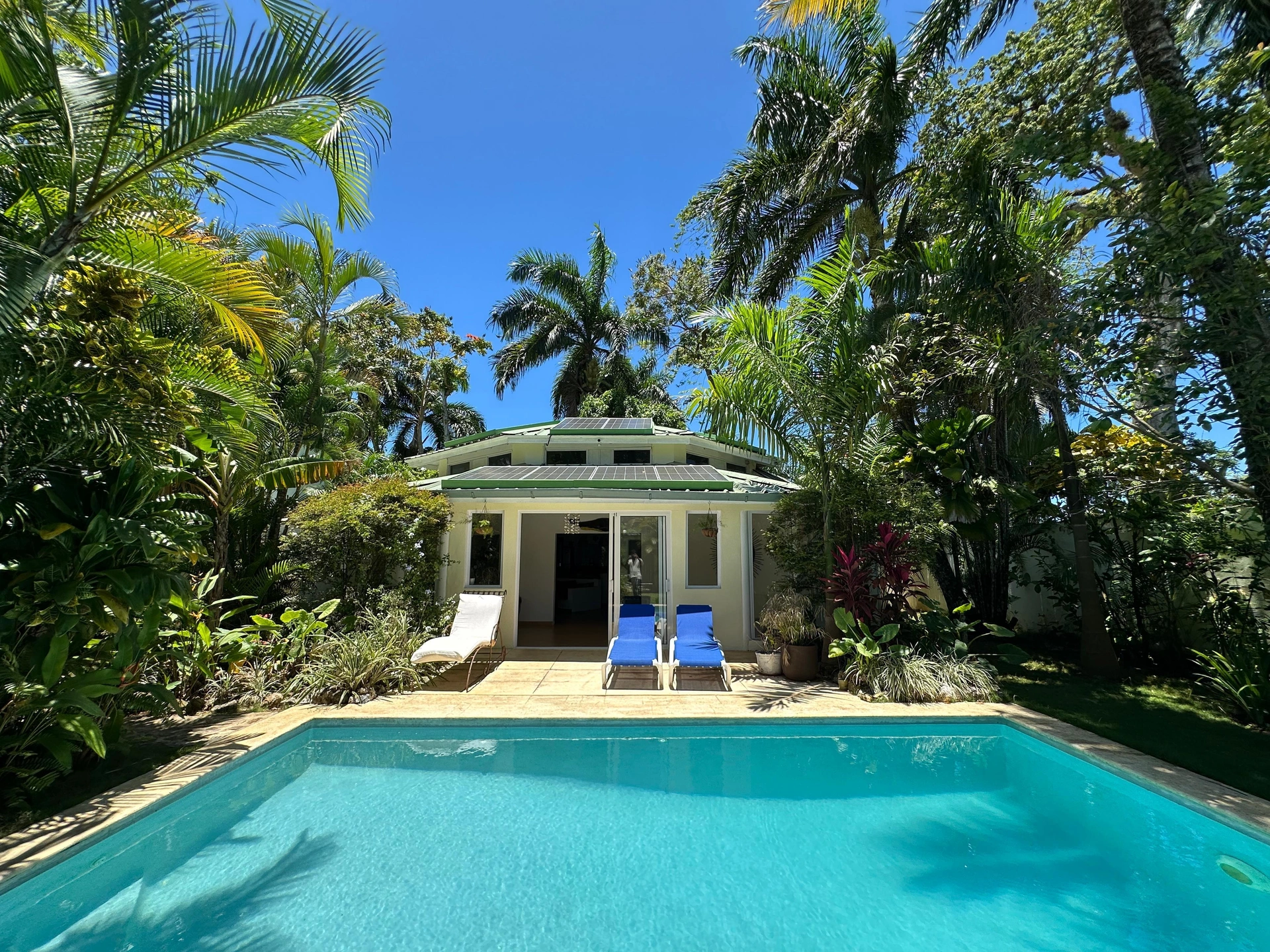 Encantadora villa rodeada de naturaleza, ubicada a solo 5 minutos de la playa y a 1 minuto del árbol más grande del Parque Nacional Los Haitises. Construida sobre un terreno de 550 m², ofrece 140 m² de espacio con 3 habitaciones, 2 baños, área de lavado, piscina privada, hermoso jardín tropical y parqueo para 2 vehículos.