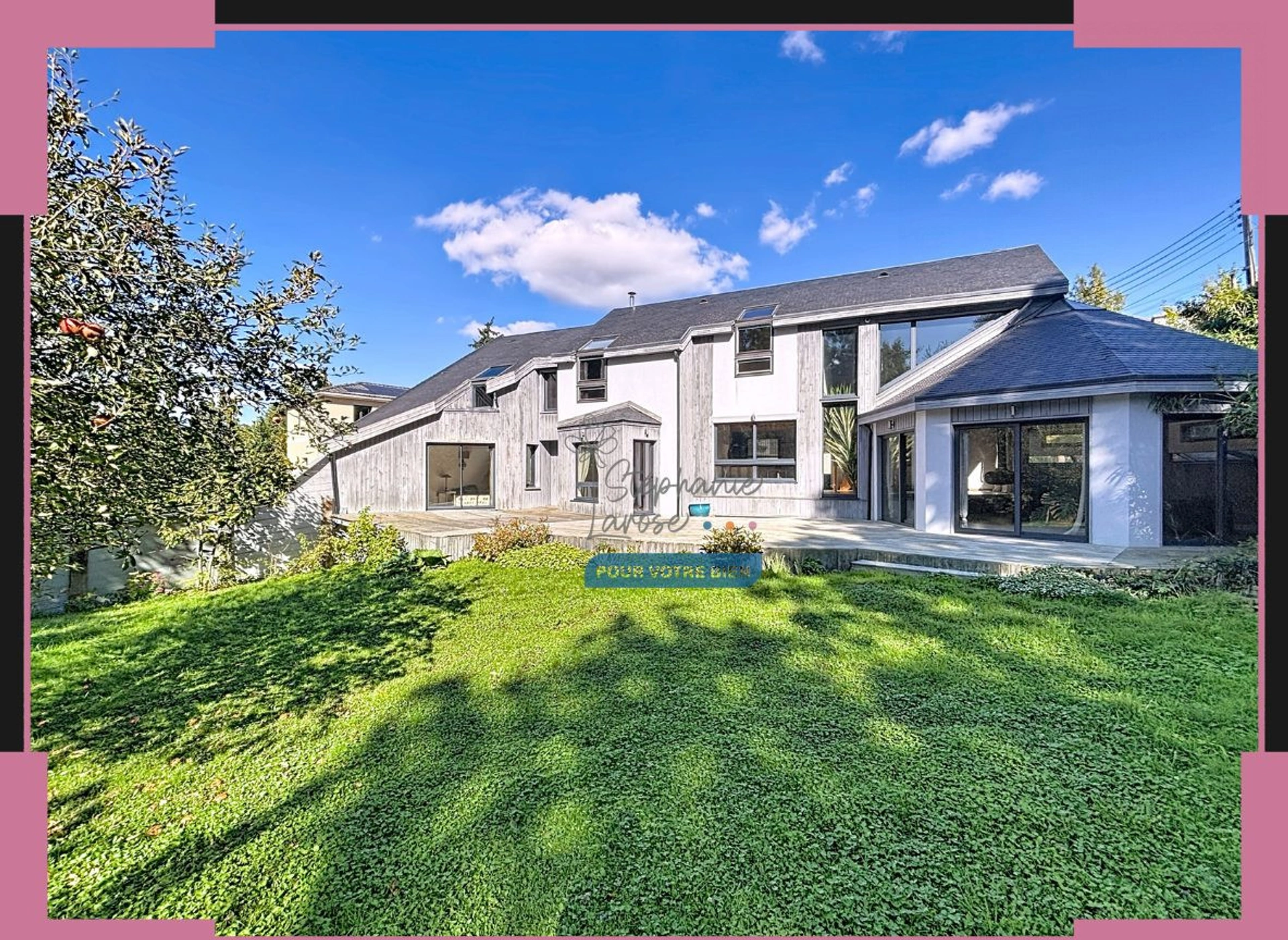 Architect-designed timber-frame house (1996) – 250 m² living space on 1,339 m² wooded plot – Quiet residential cul-de-sac, no overlooking neighbours, South/South-West facing.