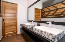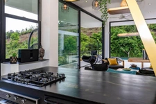 Two contemporary kitchens, perfectly integrated into the architecture, offer ideal ergonomics for family use as well as for chefs.