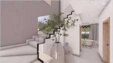 As you enter the first level, you are welcomed by a spacious open-concept living and dining area that naturally integrates with the outdoor terrace. The layout is highly functional, featuring a modern kitchen, family room, guest bathroom, and well-positioned service areas.