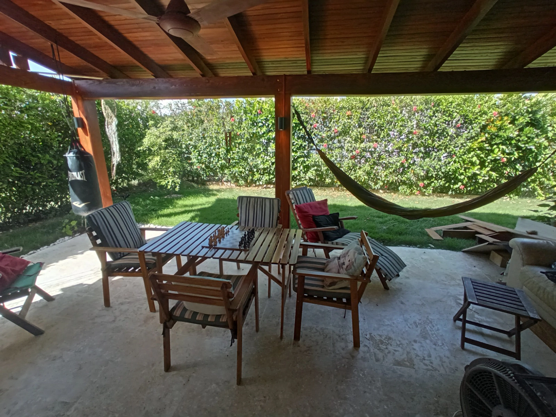· Amplia terraza de madera y marquesina de madera recién construidas.
