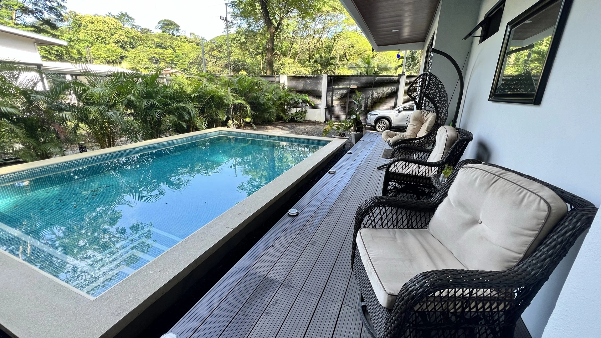 400033402017 - Punta Leona House | New Construction - Esta casa es de esas opciones que tiene todo lo que usted busca si es un enamorado de la naturaleza y la privacidad pero al mismo tiempo le gusta tener todos los servicios, tiendas de conveniencia, restaurantes y playas mas populares a pocos minutos de distancia manejando.La propiedad esta ubicada en el camino hacia playa Mantas Punta Leona, una de las playas mas bellas del pacifico central. Estarías a 10 minutos de las playas mas reconocidas del país como lo son Herradura y Jaco. Puedes también visitar playa agujas que son solo 5 minutos en carro, o sea una locación muy estratégica por si quieres vivir permanentemente o también si lo que buscas es tener un retorno de inversión por medio de rentas vacacionales. Un area de parqueo para tres vehículos es algo importante de considerar.La casa tiene dos dormitorios, 2.5 baños y una cocina con un centro de comedor con vista a la piscina y hacia el lado opuesto es un acceso directo a la quebrada donde los majestuosos arboles brindan un espectáculo natural de flora y fauna. Definitivamente un sueño de casa hecha realidad.La casa es nueva y viene full amuebladaContáctame para agendar una visita en cualquier momentoThis house is one of those options that has everything you are looking for if you are in love with nature and privacy but at the same time you like to have all the services, convenience stores, restaurants and most popular beaches just a few minutes away driving.The property is located on the road to Mantas Beach Punta Leona, one of the most beautiful beaches in the central pacific. You would be 10 minutes from the most famous beaches in the country such as Herradura and Jaco. You can also visit Playa Agujas which is only 5 minutes drive, this makes this location very strategic in case you want to live here permanently or just to make it a return of investment through vacation rentals. Big parking area for three cars is something important to consider.The house has two bedrooms, 2.5 bathrooms and a kitchen with a dining area looking to the pool. To the opposite side it is a direct access to the creek where the majestic trees provide a natural spectacle of flora and fauna.The house is new construction and it comes fully furnishedReach out to me to schedule a walkthrough any time.