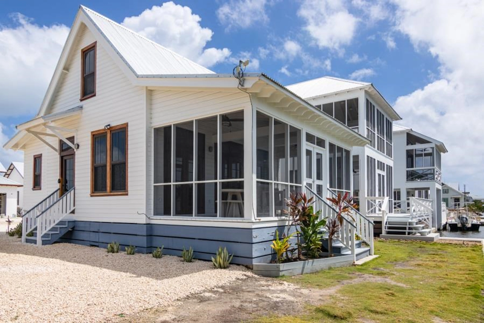 100081530093 - 2 Bedroom Furnished House in Mahogany Bay Belize - The Cordage Cottage is a cozy 780 sq ft house with 2 bedrooms, 1 bathroom, and additional loft.This wood-built home is one of the home models in Mahogany Bay called theCordage Cottage. This is a great value resale home located on Street 4 of Mahogany Bay with the canal on the west side of the property for sunset views.This home is already in the rental pool and generating income.Home DetailsSize: 780sq.ft.Bedrooms: 2Bathrooms: 1Width:37′ 10″Length:39′ 6″1st Floor: 655sq.ft.Loft: 116sq.ft.Screened In Porch: 253sq.ft.Deck: 295sq.ft.Property ListingBelize Real Estate Listings
