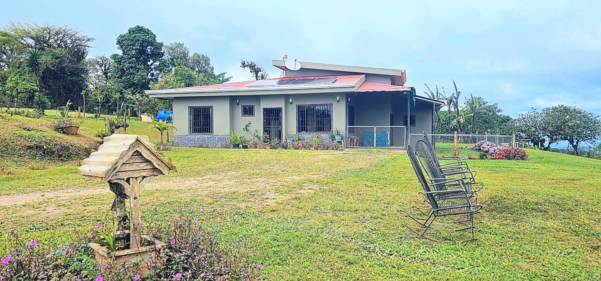 400193286083 - Off-Grid Mountain Home with Multiple Volcano Views on 5,775 m² – La Balsa, San Ramón - Located in the peaceful countryside of La Balsa, this beautifully maintained off-grid property offers privacy, sustainability, and spectacular views of several of Costa Rica’s volcanoes. From the home you can see Platanar Volcano, Porvenir Volcano, and Barva Volcano, while Arenal Volcano can be viewed from the top of the hill just steps from the house.Set on 5,775 m² (approximately 1.4 acres) of lush land, the property features a well-constructed 130 m² home offered semi-furnished and in excellent condition. The home includes 3 bedrooms, a beautiful kitchen with quality finishes, 2 attractive tiled bathrooms, andhot water throughout, providing comfortable modern living in a peaceful natural setting.Self-Sufficient InfrastructureThis property is designed for reliable off-grid living. The home operates on a robust solar energy system consisting of:12 solar panels (8 × 585W and 4 × 610W high-efficiency N-type half-cell panels)8 kW inverter/converter providing both 120V and 240V powerTwo 100Ah batteries for energy storageWater is supplied from a private well equipped with a 240V submersible pump that draws only 7 amps while running. The system is controlled by an automatic controller that feeds water into two holding tanks located near the house, ensuring a consistent and reliable water supply.Land and Fruit TreesThe land offers a beautiful natural setting with productive fruit trees already established, including:SapoteWater appleLemonMandarinAvocadoGuavaPlantainBananaCastañoThe owners are also actively reforesting the back portion of the property, with 60 trees already planted and an additional 65 planned, creating a sustainable and environmentally friendly landscape for the future.LocationAccess is via a private road, providing privacy and tranquility while still being within reasonable reach of the services, shops, and amenities of San Ramón.This unique property is ideal for buyers seeking:Sustainable off-grid livingA peaceful mountain retreatA self-sufficient lifestyle surrounded by natureA private residence with exceptional volcano viewsWith its combination of beautiful scenery, independent utilities, established fruit trees, and reforestation efforts, this property offers a rare opportunity to enjoy a truly sustainable lifestyle in Costa Rica’s mountain countryside.