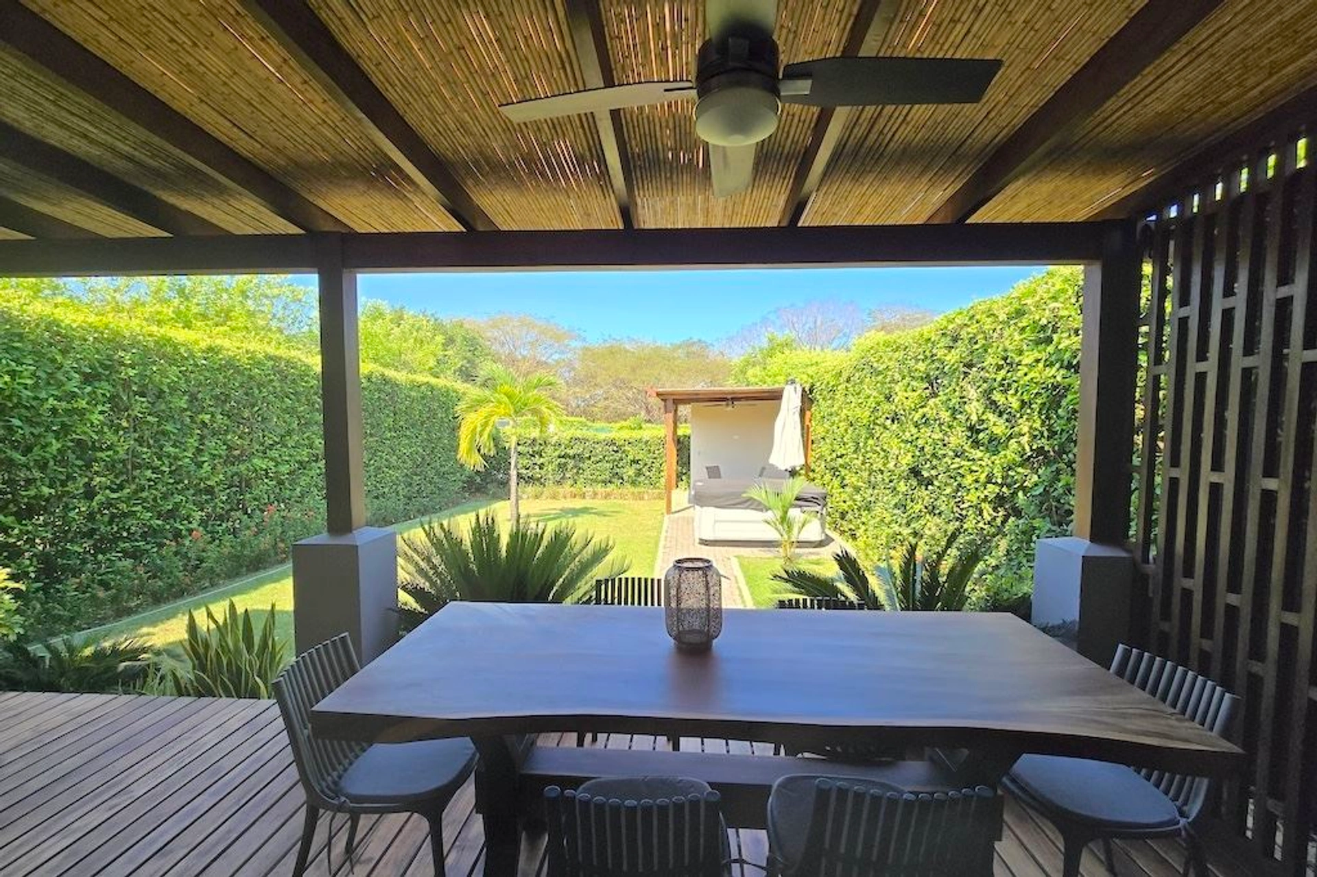 40001050029 - Move-In Ready Home with Jacuzzi & Tropical Garden in Loma Verde - Beautifully finished two-bedroom and two full bathroom home located in the popular community of Loma Verde. This home is constructed with cement block and steel construction and featured a beautiful back yard area with covered terrace surrounded by tropical plants and the property is enclosed for privacy with limoncello. There is a covered area for BBQs and an outside Jacuzzi.The kitchen is fully equipped with stainless steel appliances and have granite counters and solid wood cabinets. There is a spacious laundry room area with a washer and dryer. The bedrooms have ample closets and are elegantly furnished. This fantastic property is move in ready.Loma Verde community features 24-hour security, pool and construction for a future gym and meeting room.