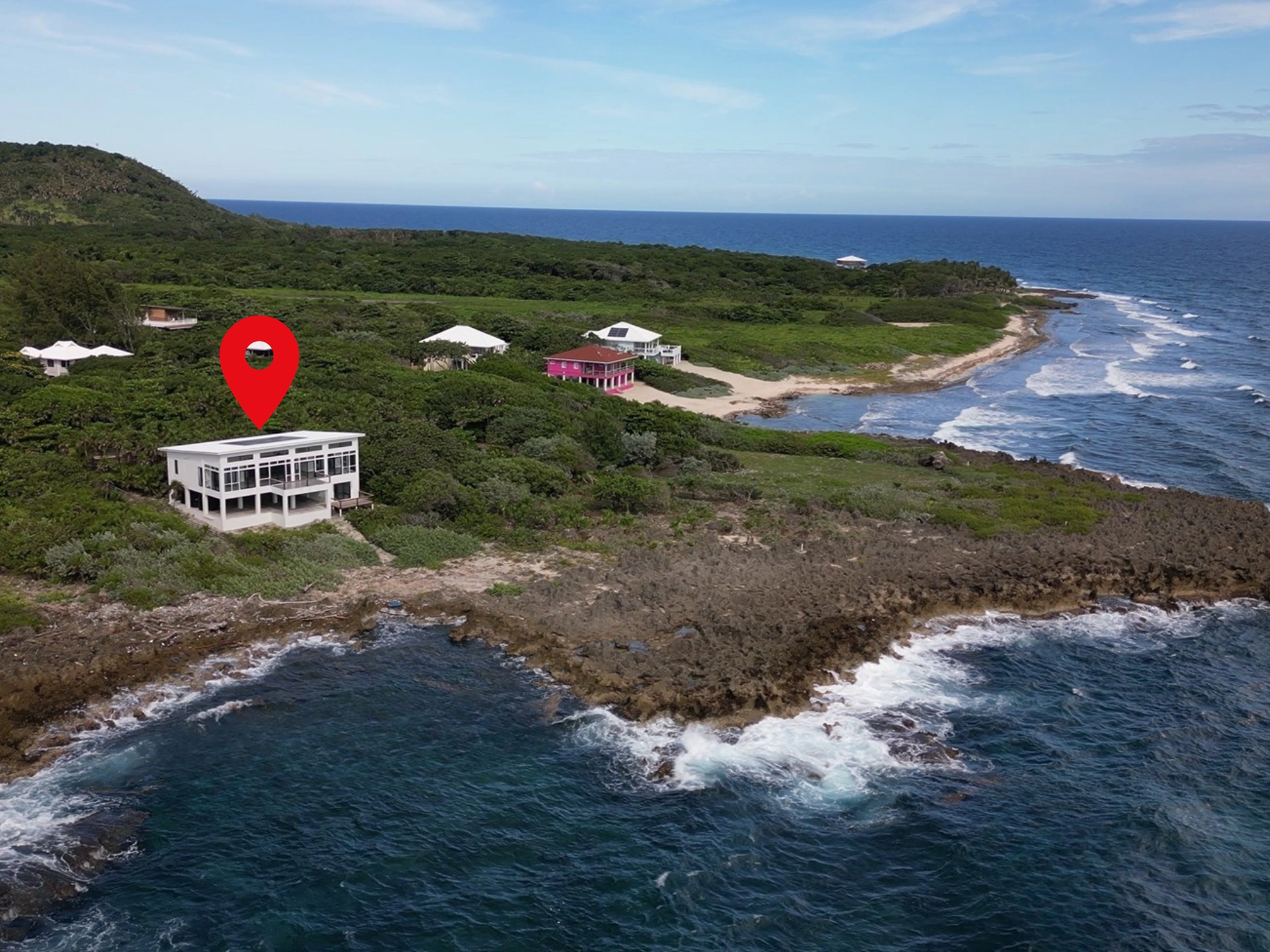00220198711 - Platinum Palisades 118ft ocean, 3bd-3ba Off-Grid Living 0.47acres - Platinum Palisades gives you full off-grid freedom with a solar system built to scale. 24 solar panels, 30kW of storage and a high-capacity inverter ready for another home, combined with 4500 gallons of rain water catchment, set you up for low cost living. Sitting with a wide 118ft/36m of ocean frontage on a large 0.47acres/1895sqm lot, your days start with big Caribbean views. The 1,484sqft open concept main level is open & sunny with both bedrooms facing the sea. The 916sqft glass-enclosed sunroom gives you relaxed indoor & outdoor living in any weather. A ground level 375sqft private suite with its own bath & balcony & spectacular views, adds comfort for guests & flexibility for rentals. With the Aquarium Dive Site nearby, your days can be spent snorkeling or diving the reef.From here, you get both sunrise over the ocean and stunning panoramic views to the mountains of the mainland. Gorgeous, sparkled, quartz countertops run seamlessly throughout the home - from the kitchen to each bathroom. You also get deeded access to a sandy beach in the development where turtles come up and lay their eggs. An additional 700sqft of future expansion space is available on the ground floor, which keeps your options wide open. The ironshore out front, protects your shoreline, with tide pools that keeps the shores interesting from morning to evening. All outlets and electrical switches were imported from the U.S. which gives you solid quality and simple replacement when needed. The home is about fourteen minutes by golf cart from town which gives you privacy with easy access for errands. Conditions of sale apply which protects the character of the area and supports long term value.