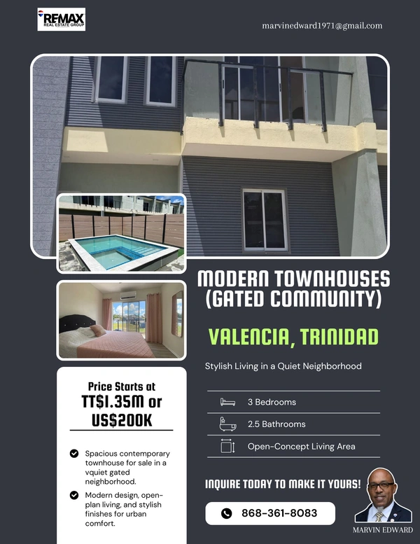 002022766247 - 3-BEDROOM TOWNHOUSE FOR SALE (GATED COMMUNITY) - VALENCIA, TRINIDAD (PRIMARY LOCATION) - ?? Townhouse for Sale – Gated Community, San Pedro Trace, Valencia?? Asking Price: TTD $1.35M to $1.55M (until November
